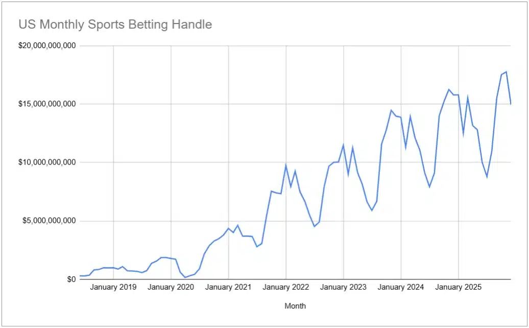 US monthly sports betting handle, Source: LegalSportsReport